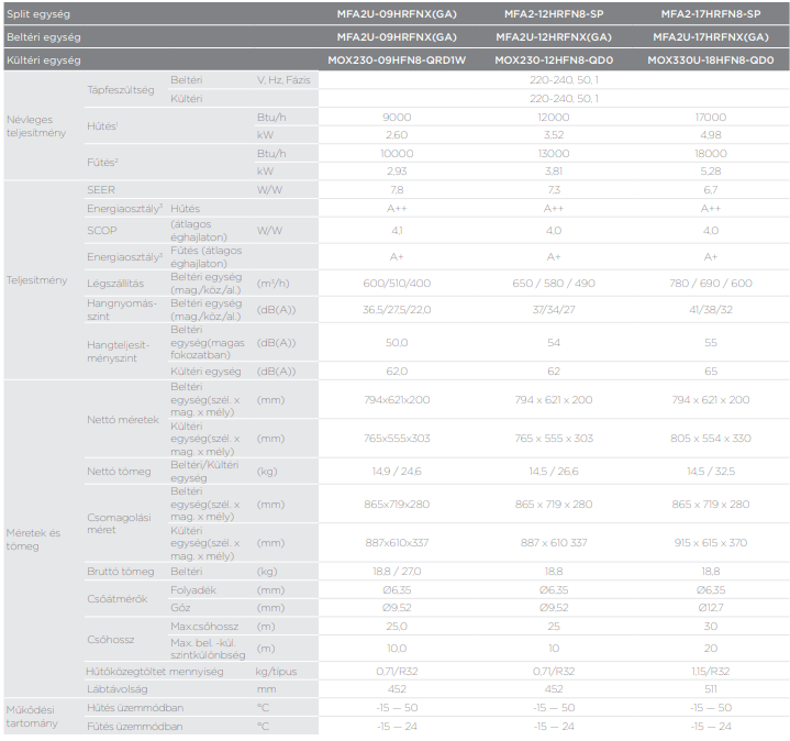 A Midea MFA2-12HRFN8-SP Konzol Inverteres Split klíma fontos tulajdonságai:
